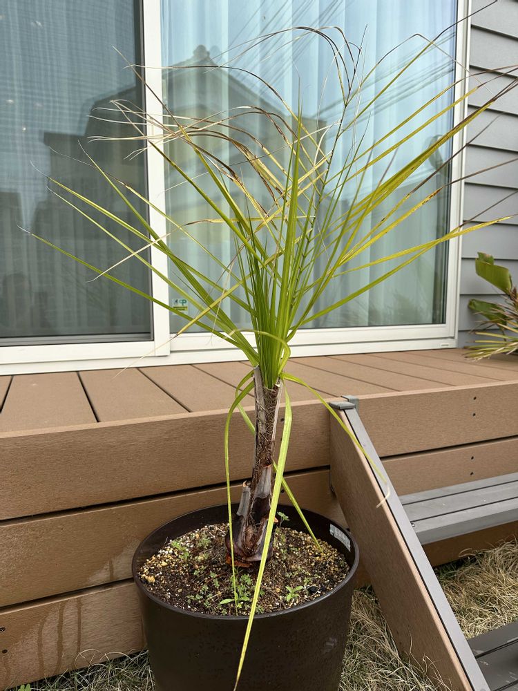 確かにグラウカ🌴はうちのヤシ🌴達の中でも春に一番早く葉が展開している気がします。でも成長そのものは遅い気も?