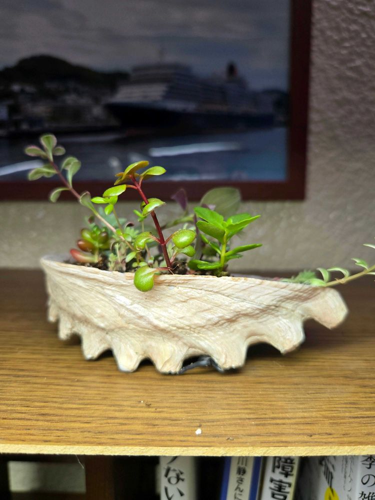 これはアワビの殻に植えたものです。