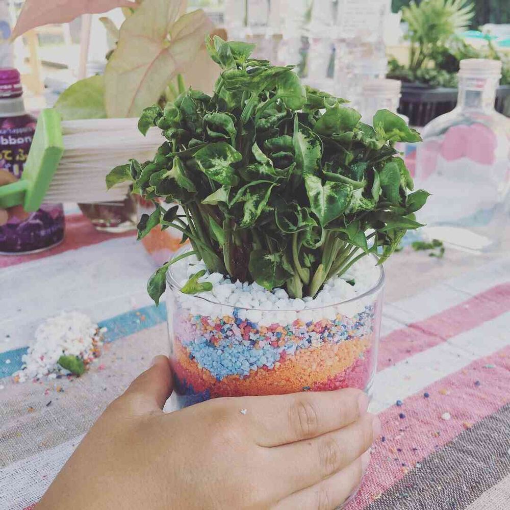 お子様も簡単に出来るミニ観葉のカラーサンド植えワークショップ!