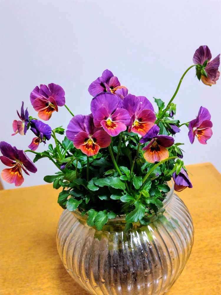 1月に作った水栽培のビオラは、茎が針金くらいの太さになぅてますが、まだ頑張って咲いてます。👍