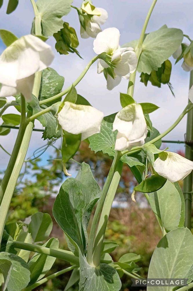 スナップエンドウは近所の人に苗を頂きました。始めて植えて豆が収穫でき感動です☺️⤵️