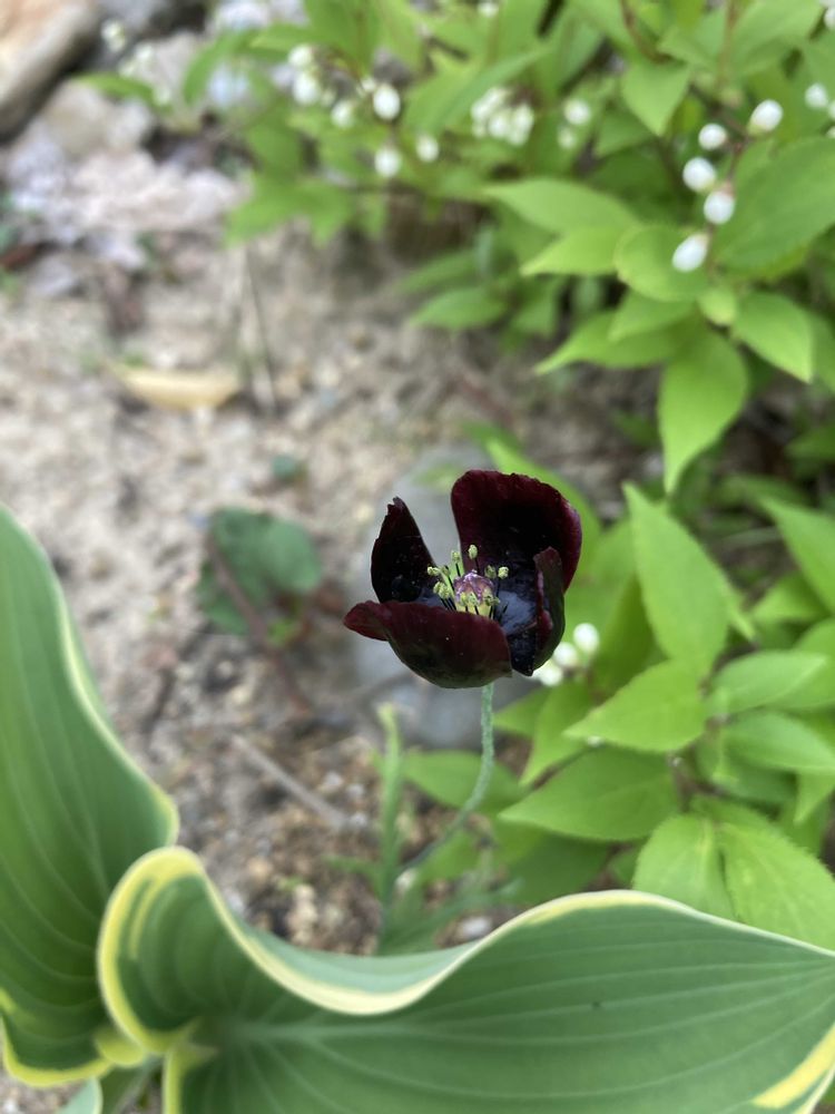 去年の咲いた花から取った種まきポピーブラックマジック🖤一輪咲いてました🌸パラパラばら撒いてた種だな。まだ小さい苗がたくさん出ています🌱🌱🌱