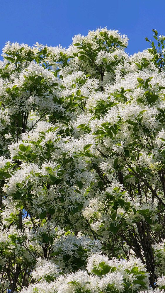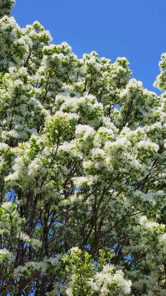 ナンジャモンジャの木に白い花が溢れんばかりに咲いていました。