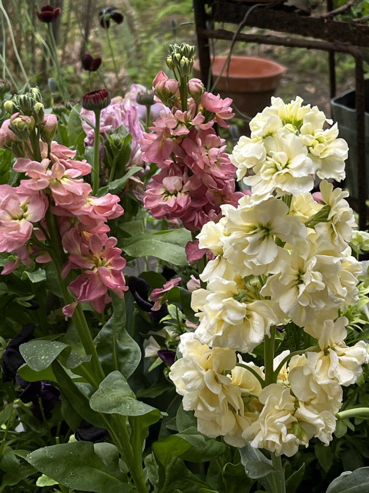 ストック、渋めの色がオシャレで素敵です💕︎︎八重咲き沢山いいですね♪