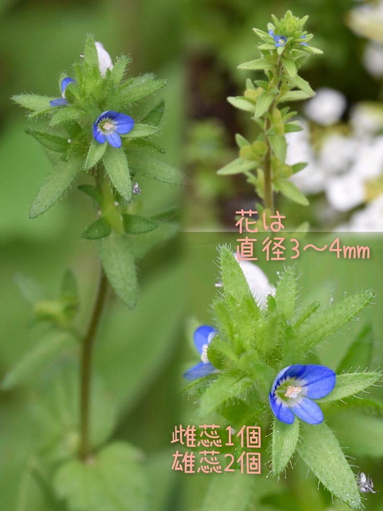 でもお花の大きさが、オオイヌノフグリは1cm、タチイヌノフグリは3mm程。よーく地面を見ないと見つけられないかもー🤭