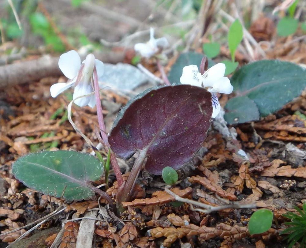 葉に毛があり裏が紫色なので、コミヤマスミレだと思います。