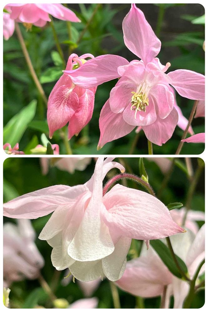 ③オダマキ2種が隣同士でモリモリ🩷🤍