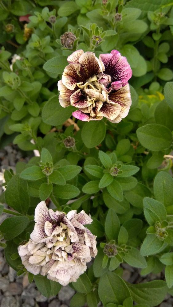 2枚目 変わった色合いのペチュニア。もう3年目かな。