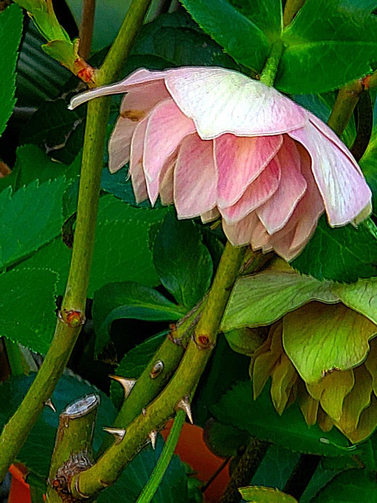 今日は、ソロソロお顔が見れなくなるクリスマスローズの八重のお花の写真5枚投稿します😎