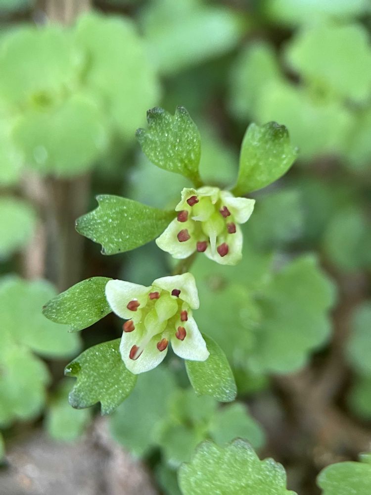 「ハナネコノメソウ🤍🔴🔴🔴🌿✨️