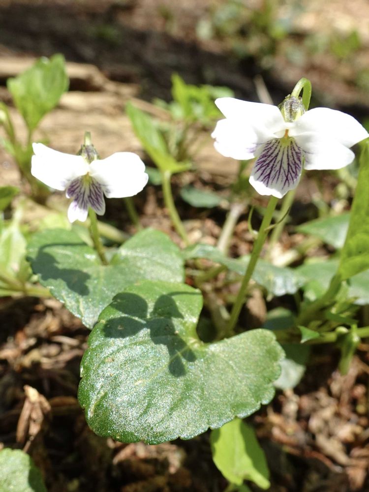 舌弁に紫色のすじがない白花品種はシラユキスミレと呼ばれています。