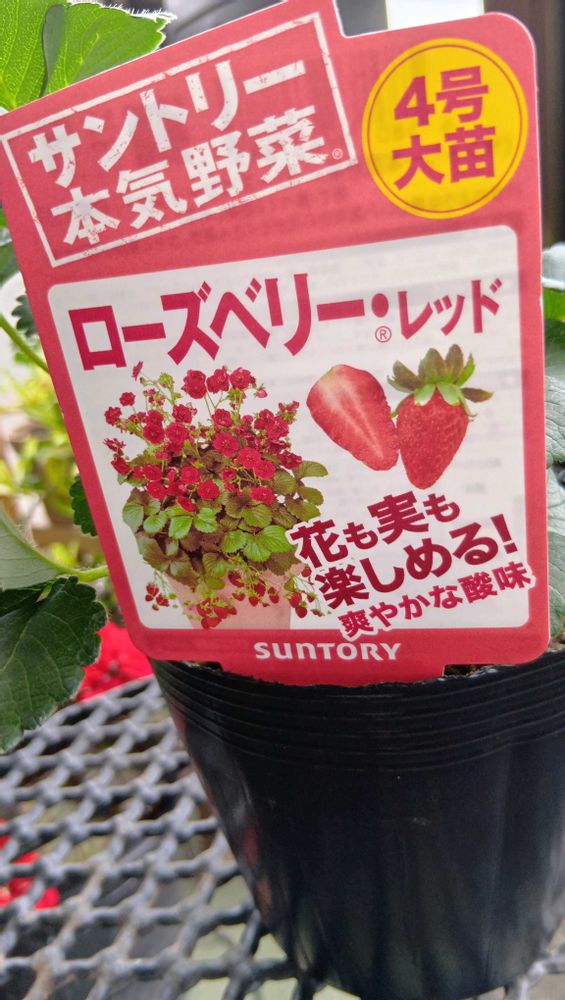 ❤️色の花が、可愛い🍓の苗を、買いました。😊