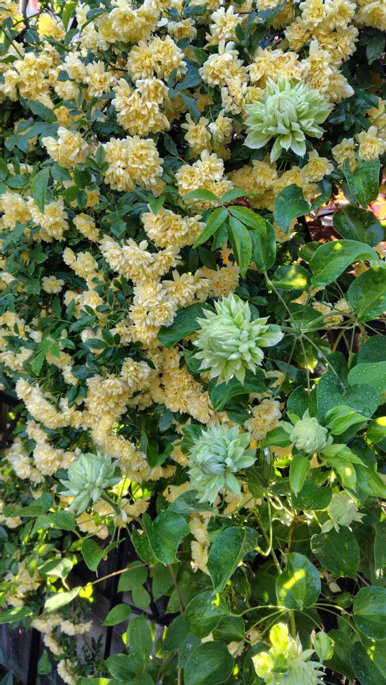 黄モッコウと一緒に咲いたら良いなぁ、と思ってフェンスに這わせたエジンバラ公爵夫人😂も、ちょっと、早く咲いてくれればなぁ、、😅