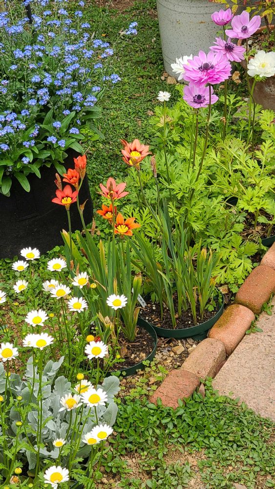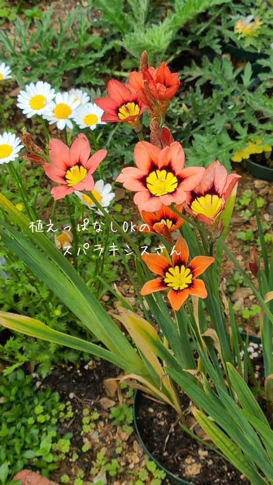 ノースポールちゃん スパラキシスちゃんも元気に咲いてくれてますね🥰🎶