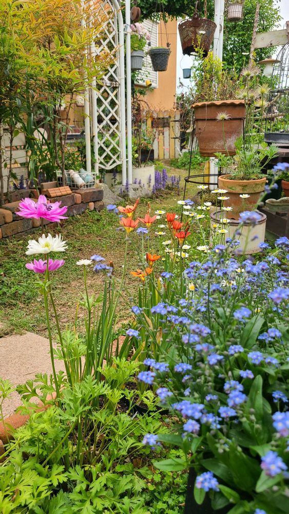 アネモネも花数減ってきたなぁ〜なんて思ってたら隣からスパラキシスさんが咲き始めましたꔛᡣ𐭩˒˒