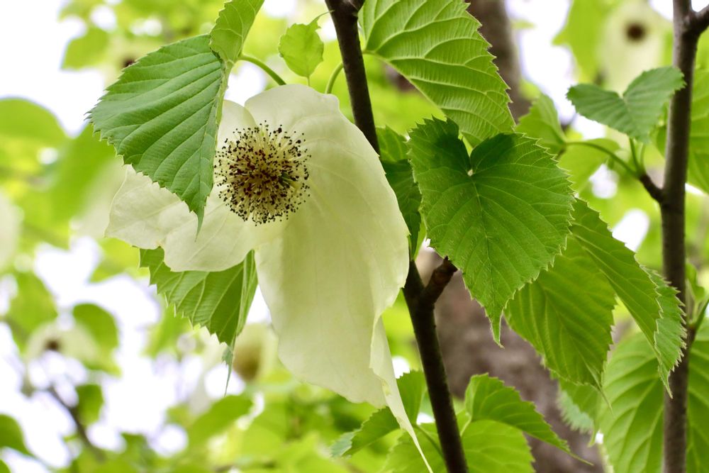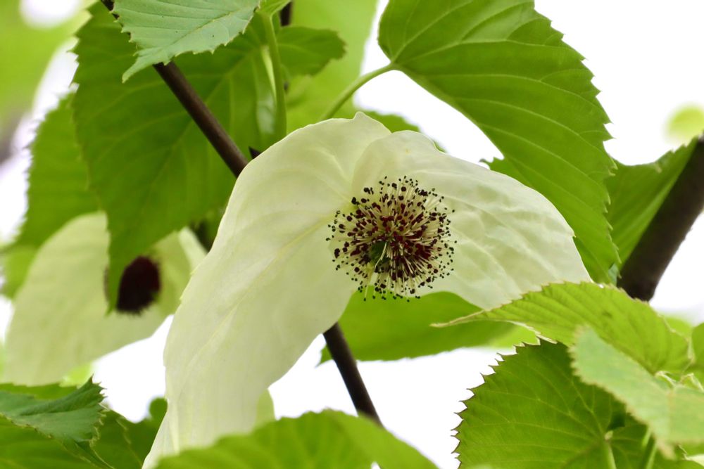 2枚の白い包が最大20㎝になり、「ハンカチを木に下げた」様になるところからこの名が。開花するまでになんと10〜15年かかるため、この木の様にたくさん咲くのはとっても希少とか😍