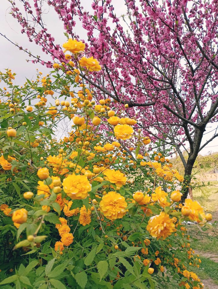 ハナモモとヤマブキが華やかに彩ってますねぇ👍️😍