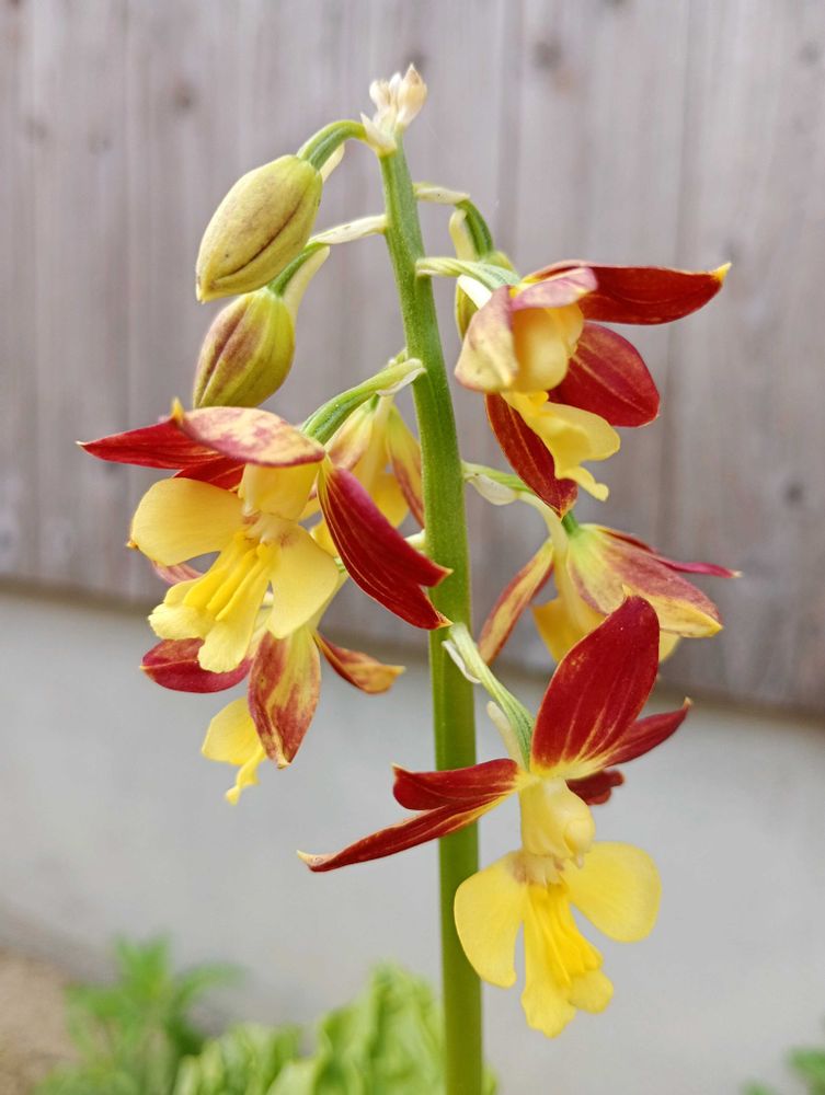 赤(エンジ)色との黄色だと言ってたのですが…、 これまで黄色は咲いた事が、無く😂💧 父の言葉もテキトーに信じては居なかったのですが、、、昨日😲!!黄色のエビネ💛🧡が咲いているのに気づきました❣️