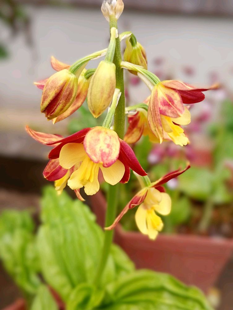 隅っこで球根が花を咲かせるのを見て、懐かしんでいます😔