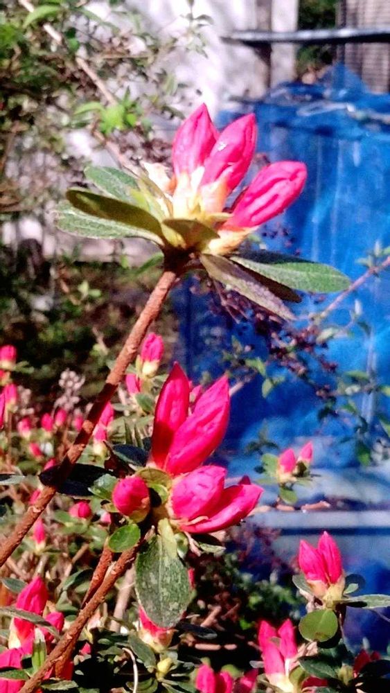 庭の赤いツツジのつぼみも大きく膨らんできました。あと1週間ぐらいで咲き始めるかな?