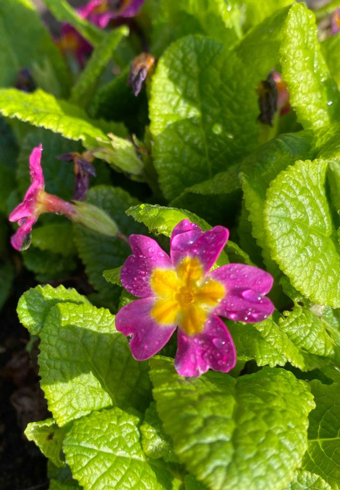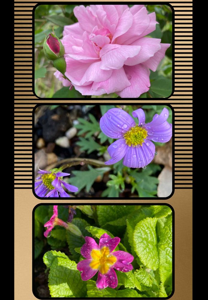 我が家唯一のバラ🌹と星空マム・ソーダ💜🌿そして古くから有る プリムラジュリアン🩷🌿(もう咲き終わりですね😅)です