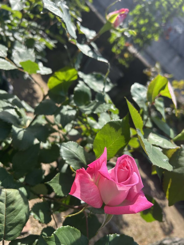 初投稿です。今日、今年初めての薔薇が咲きました。名前は「凛」です。花弁が、中心の白から縁へ行くにつれピンクに変わって行きます。