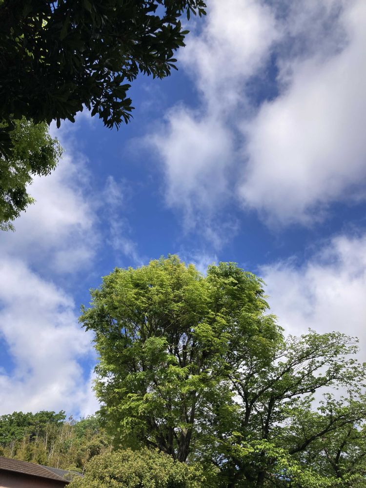 もう葉桜になってる桜の木と欅 の上は真っ青な💙空