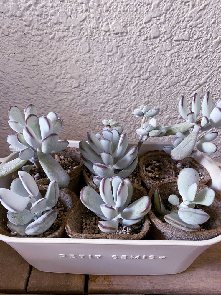 福娘錦(モダンガール)新しくお迎え😘➡️親株から独立した福娘、福だるまちゃんたち➡️鉢から溢れた多肉寄せ集めポイポイです♡