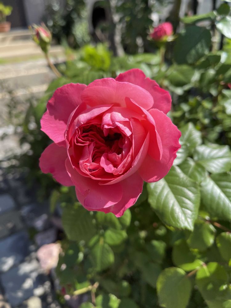 🌿バラと宿根草の小さな庭🌹 真南のオープン外構で ずっと日向の庭 逆に植物には過酷だけど バラだけは元気♡バラ強い! 日陰を作るために 雑木を植えたらいいのかな‥と 色々構想中です♡