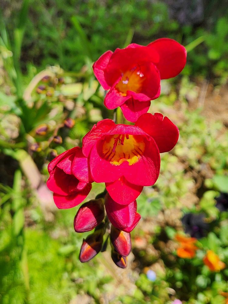 黄色のフリージアは、見たことあるけど、赤もあるとは、知らなかったわ❤香りもするのかな?