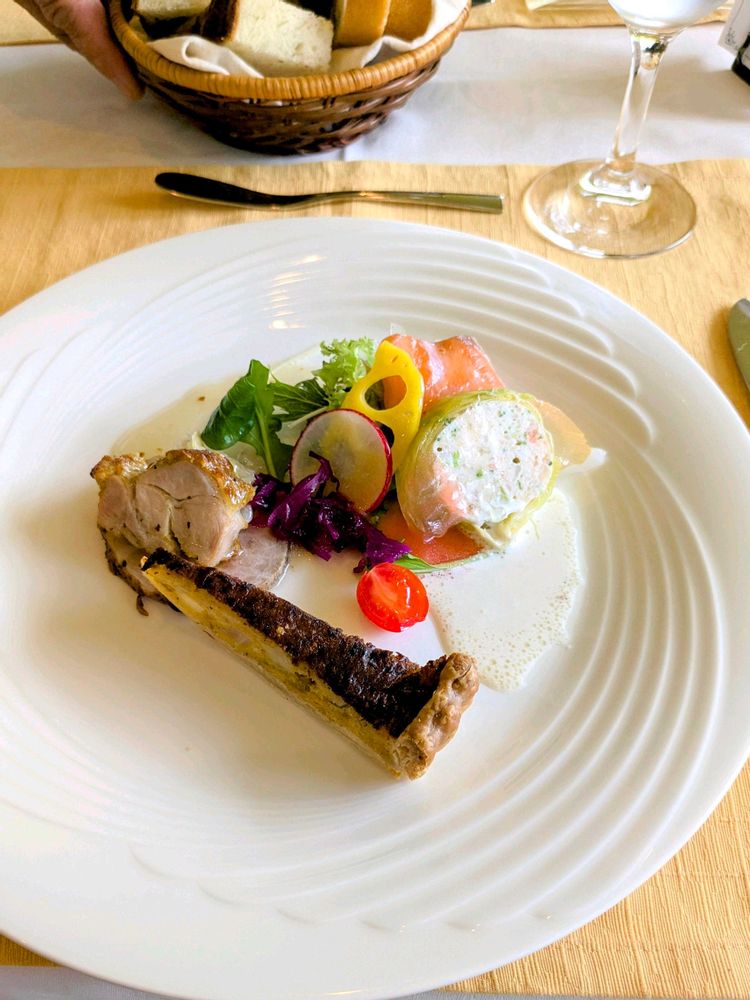 2️⃣3️⃣フレンチのランチを楽しんだレストランの御手洗とテーブルのガーベラ