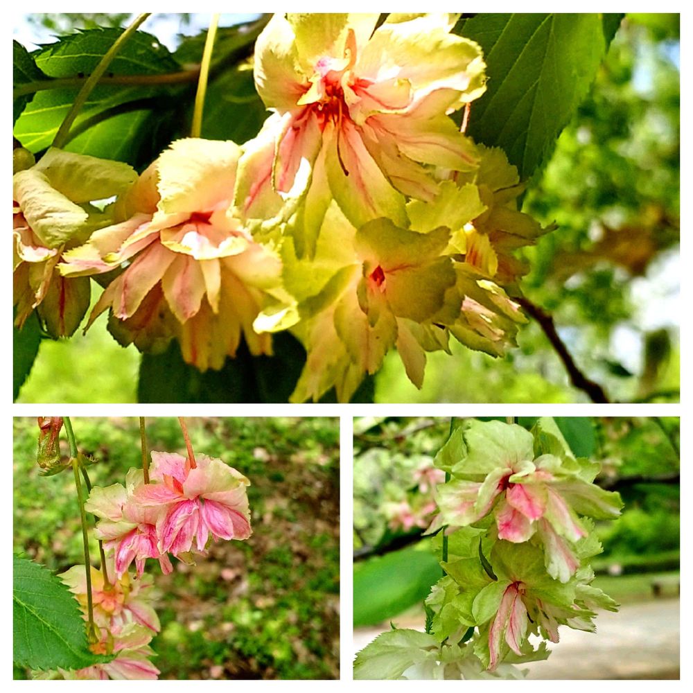 ①御衣黄という桜を検索していたらこの公園に有ると出て来たので(ホームページではありません)行ってみたら、〔鬱金桜〕でした😆 でも、鬱金桜が咲き進むとピンクになると知って先日行った所へ近々行こうと思っていたので、結局此処で見られて良かったです✌️🎶