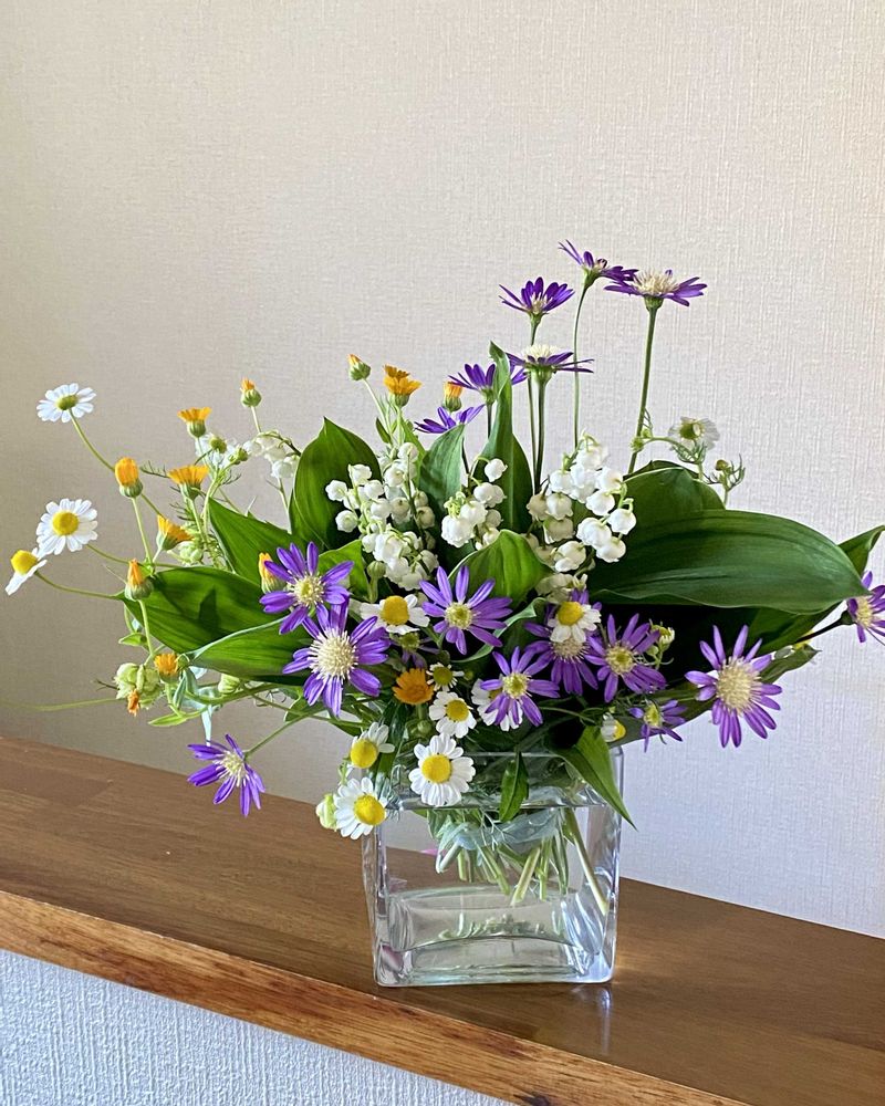 スズラン、ミヤコワスレ、カモミール、フユシラズ。