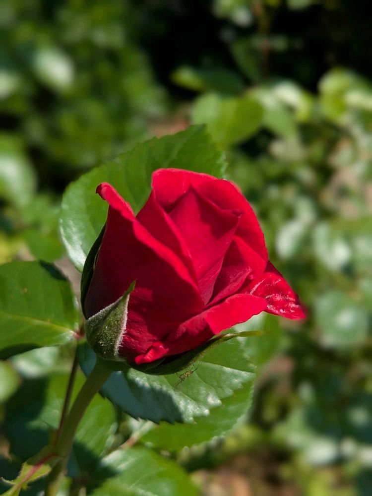 小さなバラ園では深紅の🌹が開き始めているね〜