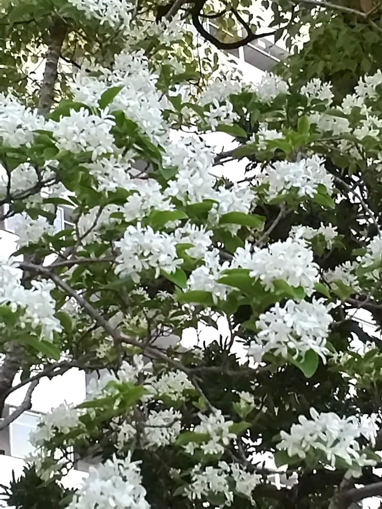 近所のスーパーの近くに毎年ゴールデンウィークになると真っ白な花を咲かせます。