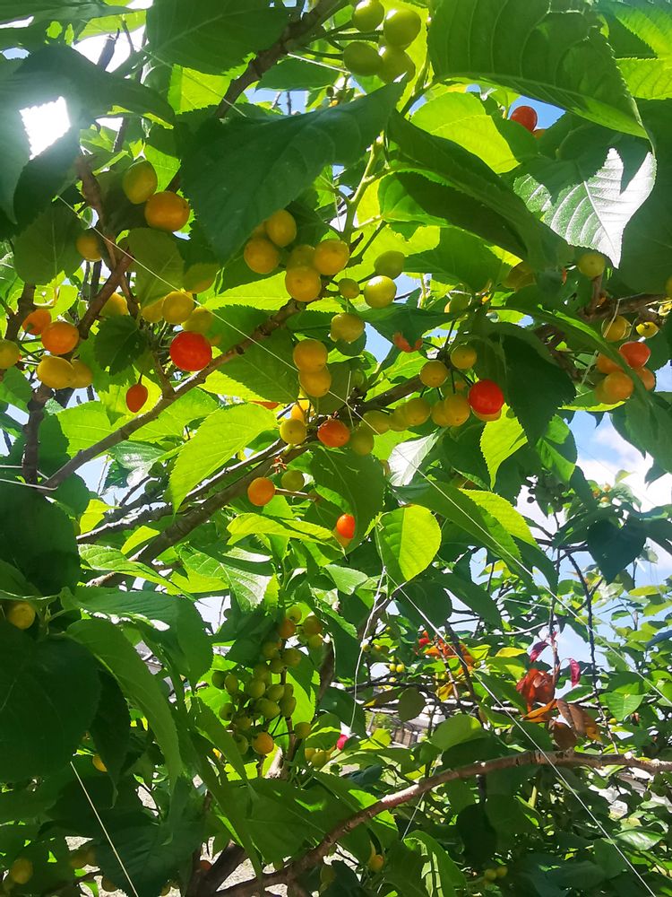 さくらんぼは、もう、色着いたら鳥にはやらないで、その場でお口に運びたい。