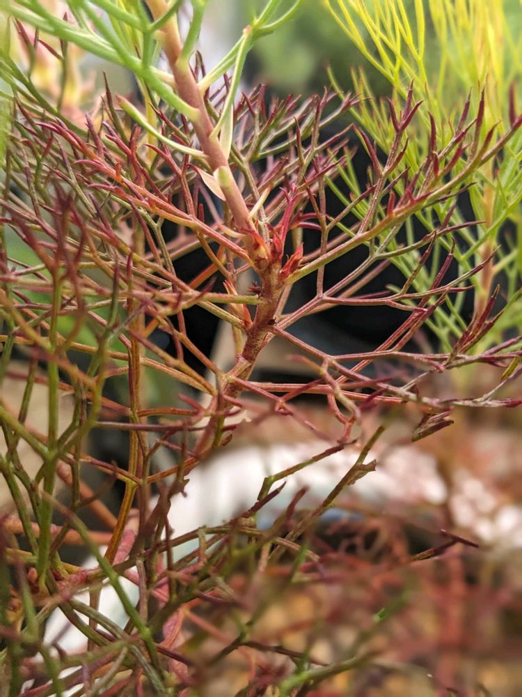 赤くなってる葉の上で切るの✂️コワイ((((;゜Д゜)))