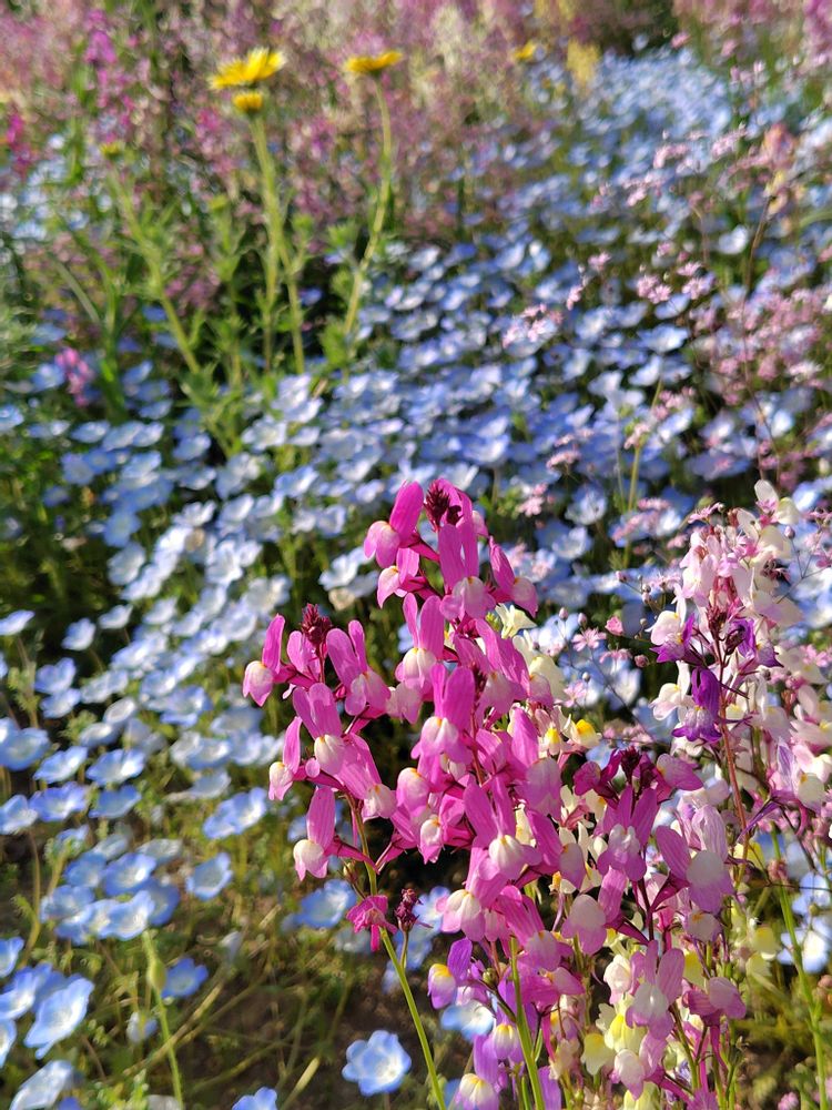 🍀ネモフィラにリナリア、カスミソウ、ウラジロデージー…優しい色合いの共演🩵💛🤍🧡🩷