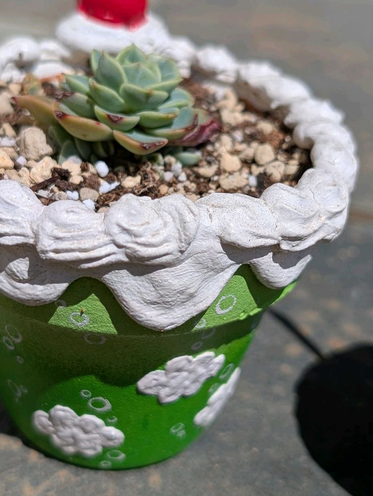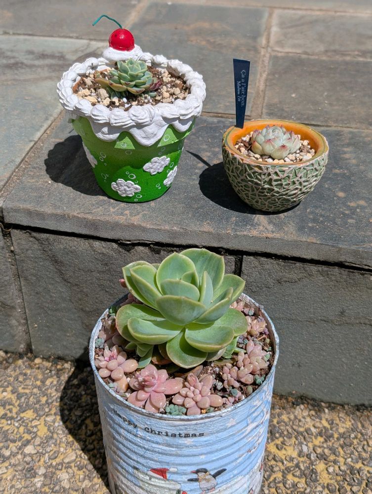 当初同じサイズ感だったけど、メロンソーダー鉢は置き場で葉が日焼けしてしまって一回り小さくなり、手前のは雨がよく当たり気づけば2、3回り大きくなってました😳