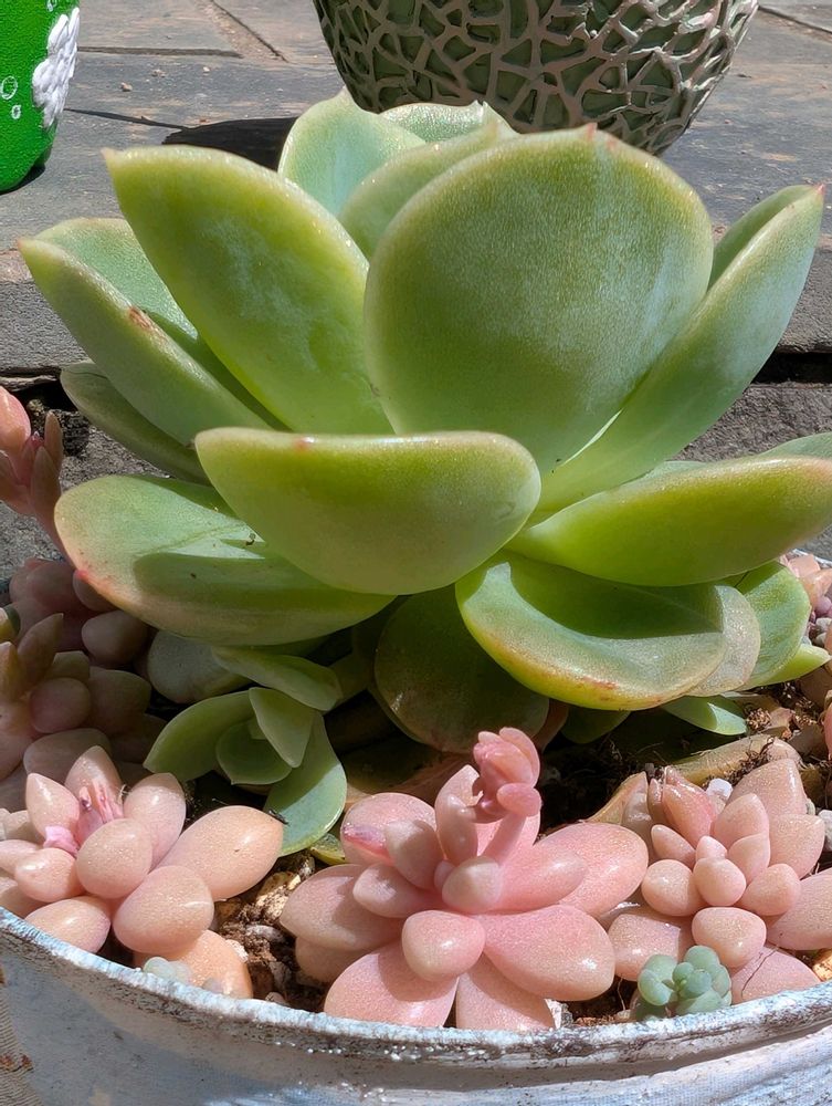 大きくなったので鉢を植え替えてアクセントに姫秋麗のピンクを寄せ植えしてます☺