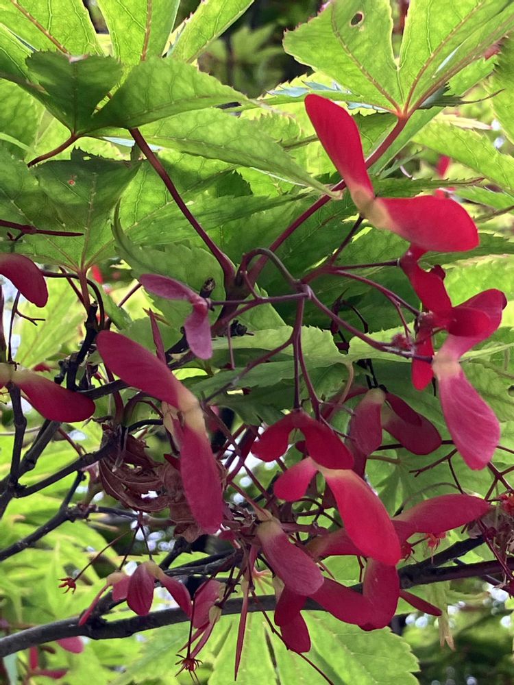 新緑の若葉に真っ赤なプロペラ‥ビビッドなステキな出会いのpic 見せて頂きありがとうございます😊