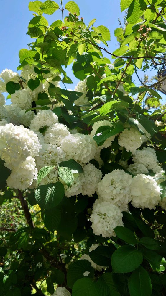 オオデマリ〜お花咲く前のグリーンボールが1番好きデス〜咲き終わりがボタボタと(ハラハラくらいならイイんだけど)落ちるので下の植物守る為に、むしり取りしてます〜🤣