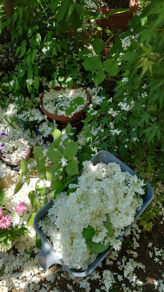 オオデマリ〜むしり取ってたら、上から花弁がボタボタ〜私も真っ白になってたよ〜😅🤍