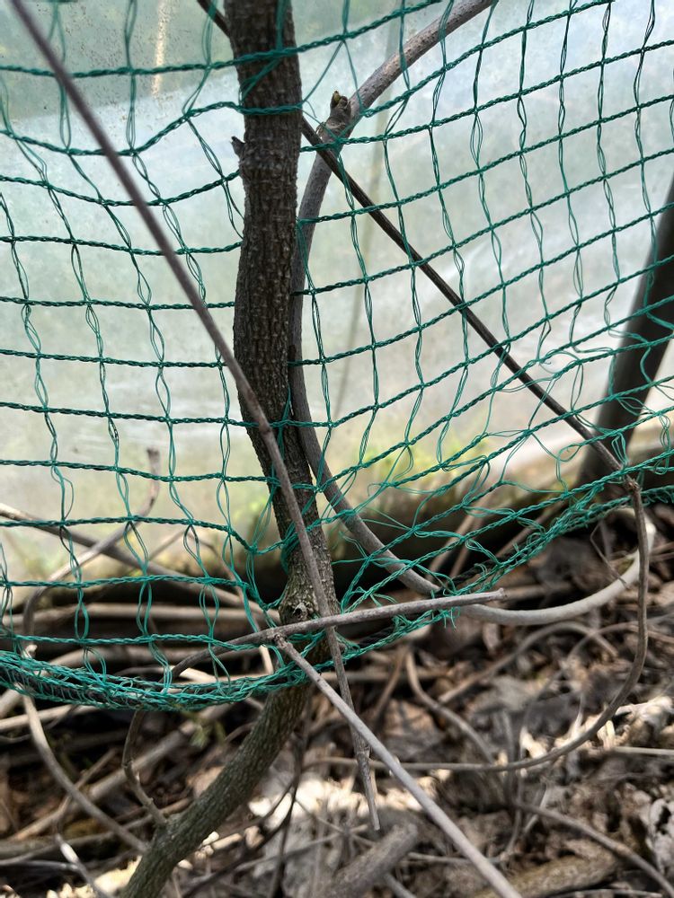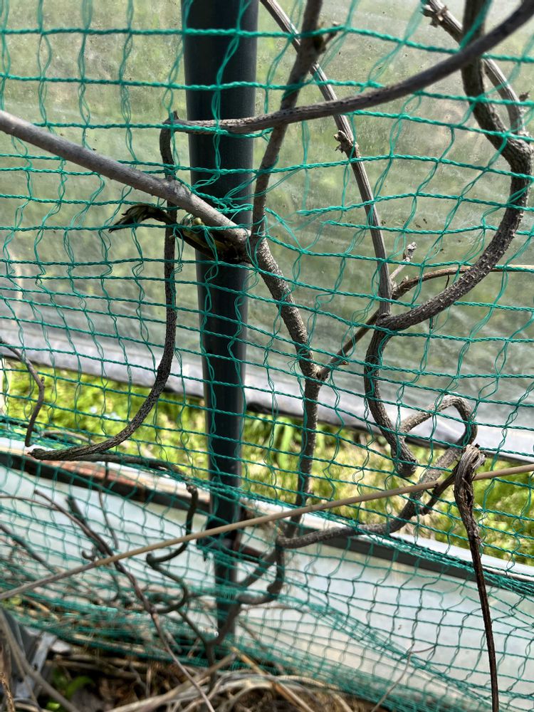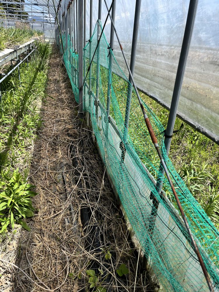 ビニールハウスでもビニールは張ってないから…ネットつきの骨組みだけ…