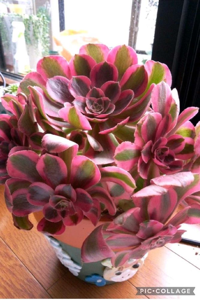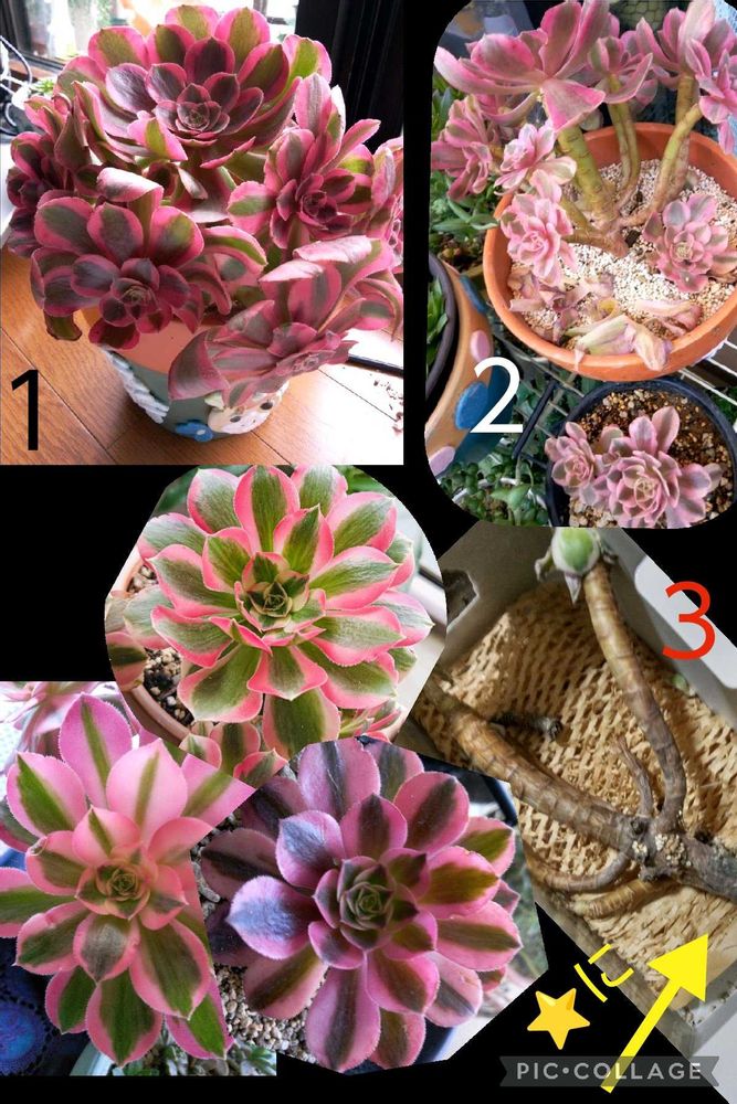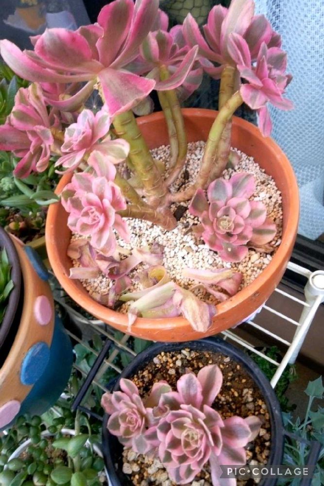 猛暑を乗り切り今年に入ってからは「左下」可愛らしい色合いで又新芽も出て可愛く楽しませてくれてましたがアット云う間に下🌿が抜け落ちて根ぐさりで駄目になりました「右下」