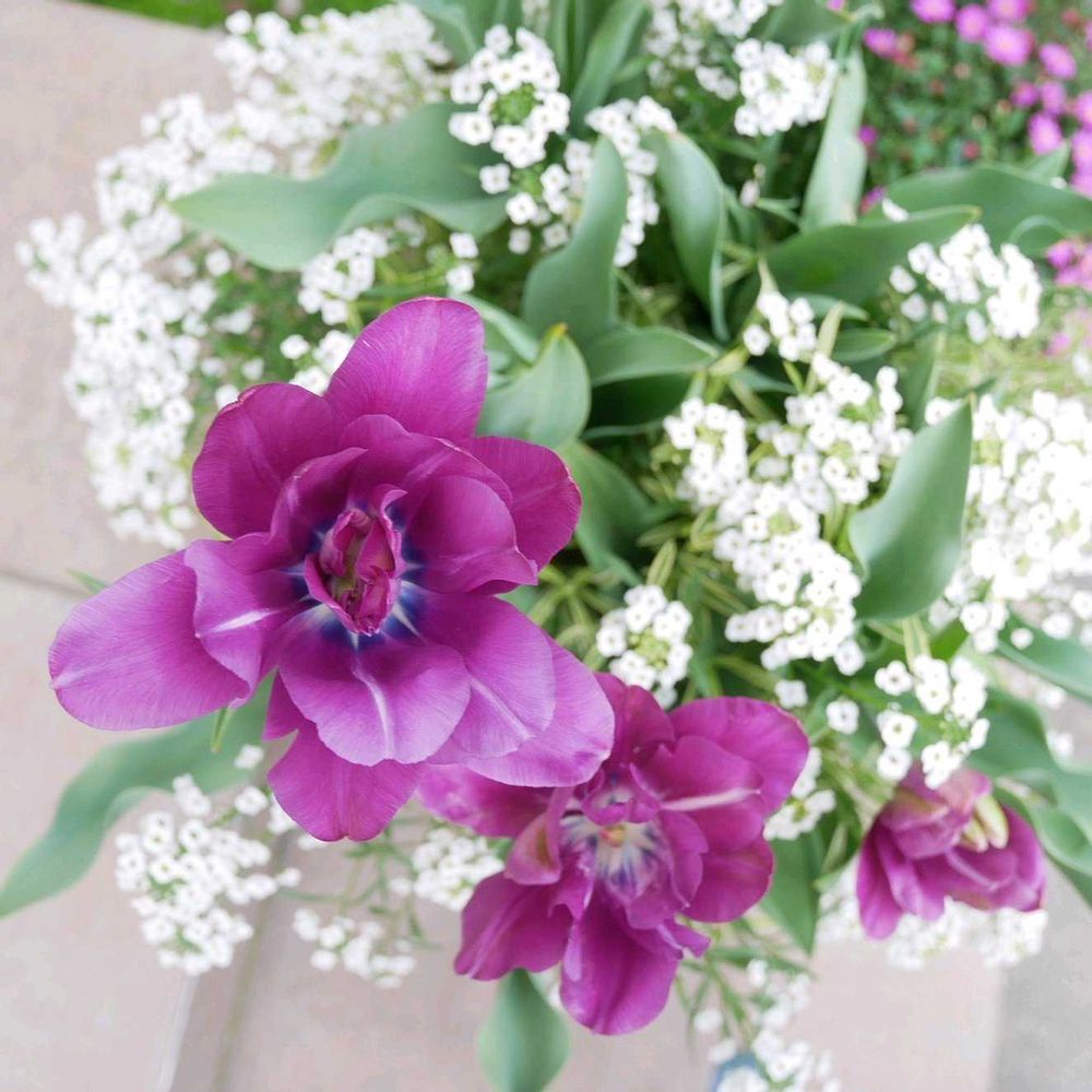 花の首飾りさんのスーパーアリッサム,チューリップ ブルースペクタクル,寄せ植えの投稿画像