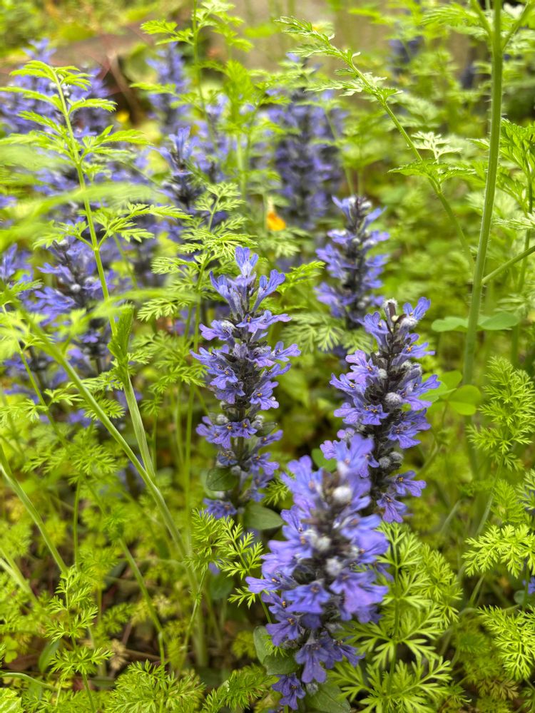 家のアジュガはうわ~っと広がった後、いなくなってしまったと思ったら思いがけない所に点在してます😂