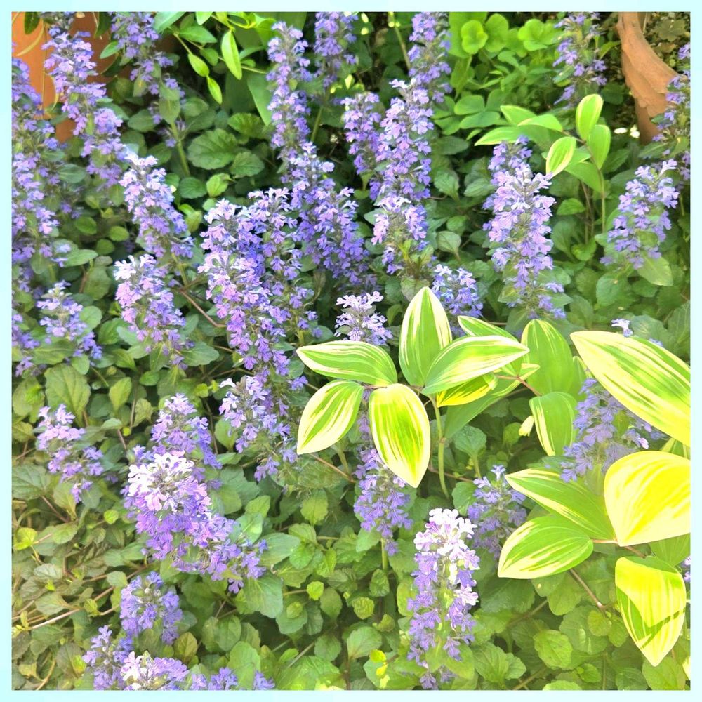 アジュガは紫とピンクが我が家も元気💪