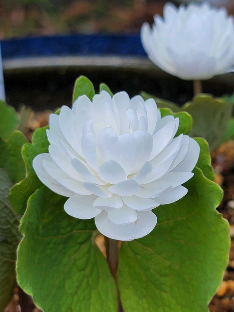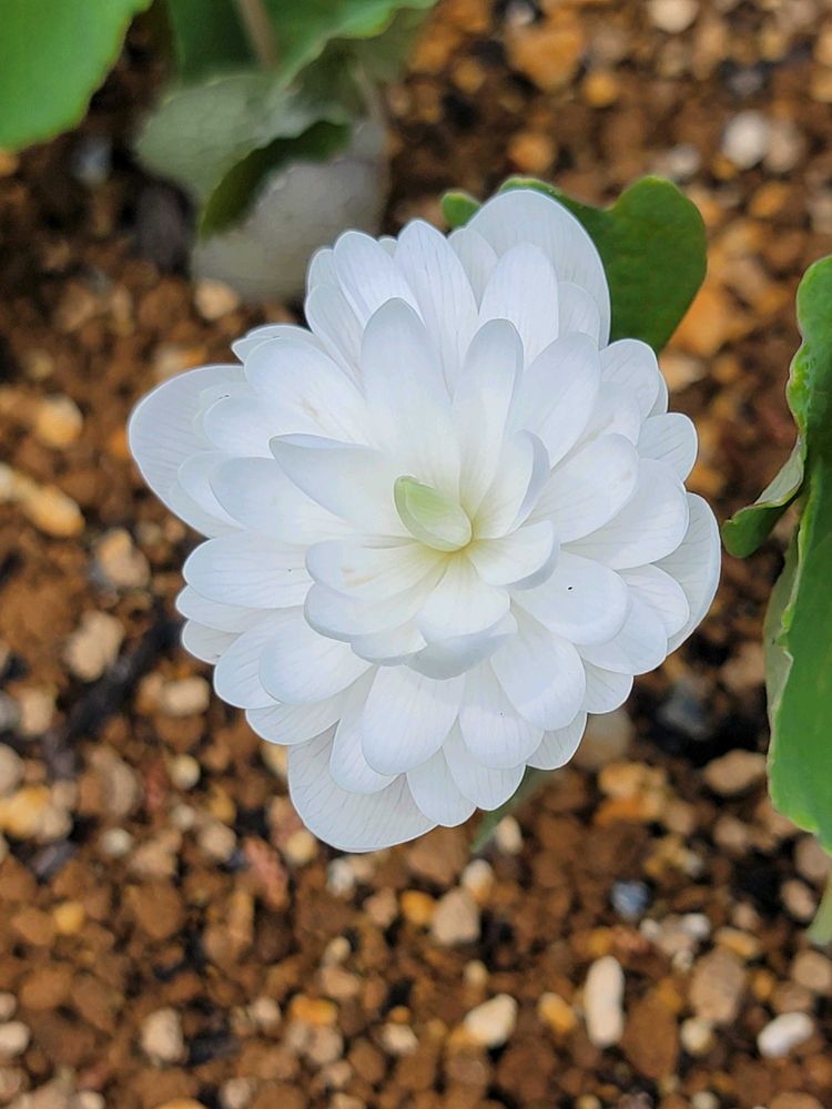 🔍👓サンギナリアは北米東部原産の春一番に花を咲かせる植物で、つぼみが葉にくるまれた柏餅のような姿で芽を出し、春の日差しを浴びて開花します。八重咲きの純白花は上品で美しい。
