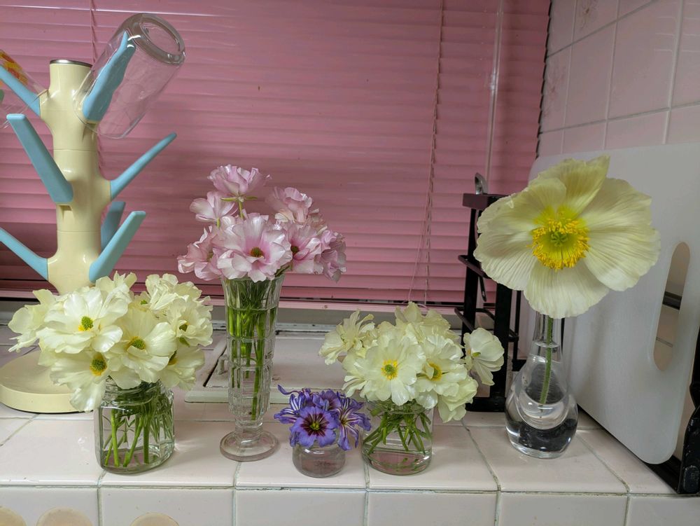 カットした花は、キッチンに飾ります。ラックスアリアドネ、グレーシス